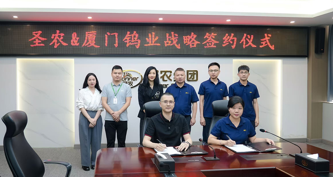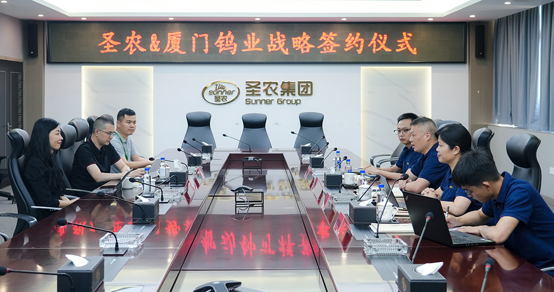 7月2日,廈門鎢業股份有限公司及廈門勢拓智動科技有限公司,與全球白羽肉雞行業領導者——福建圣農發展股份有限公司,在圣農集團總部舉行戰略合作簽約儀式。廈鎢集團常務副總裁兼勢拓智動董事長鐘可祥、勢拓智動總經理李宓貞一行,與圣農集團董事長傅芬芳、副總裁安翔等高管出席會議。